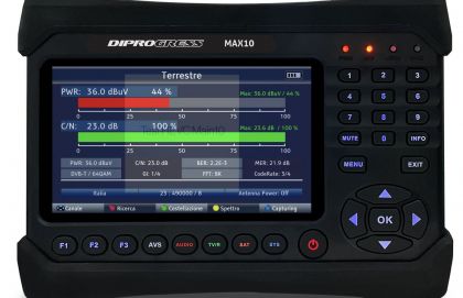 Misuratore Combo DVB-T/T2/DVB-S/S2 con power meter Fibra OtticaCon misure, immagini, spettro e displayNuova versione con demodulatore DVB-T2 e codec H...